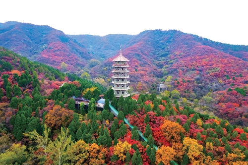 深秋時節(jié),濟(jì)南西部城區(qū)紅葉漫山